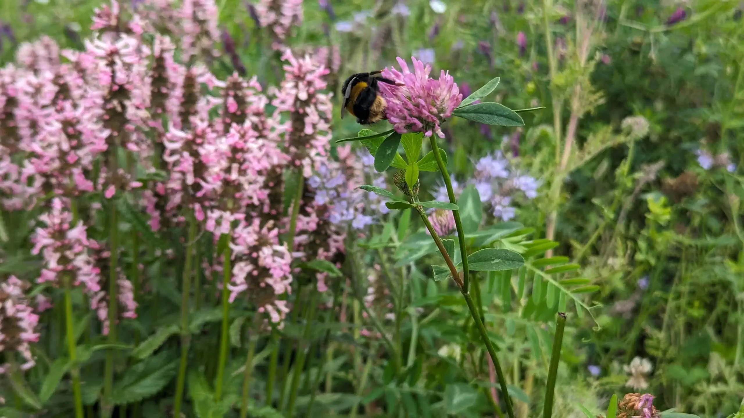 Green manures provide a significant resource for a variety of pollinators. This was seen during the Wallace garden trial and also in this year’s trial. We would like to develop the scientific study of this in the future, but anecdotally this year the clovers and the vetches have been highly attractive to pollinators, in addition to their nitrogen fixing capacities within the soil.