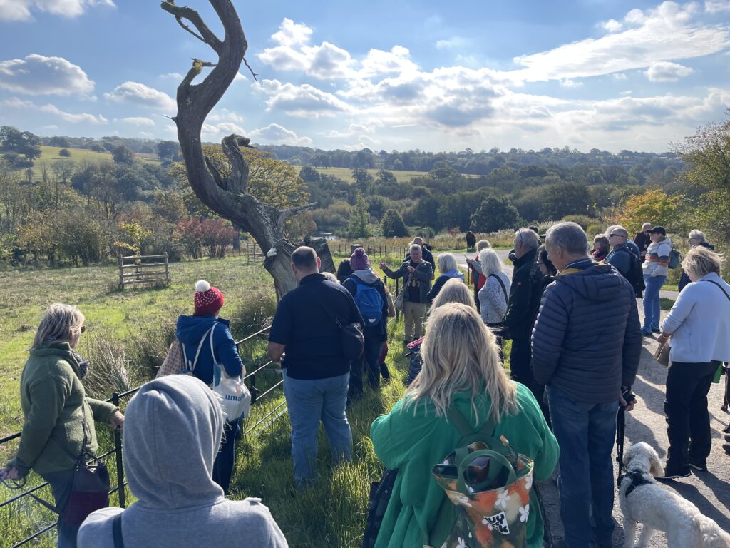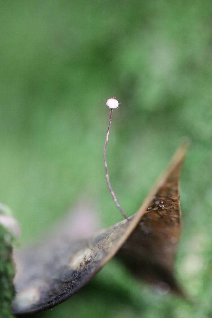 As participants strolled through the Garden’s grassy habitats, they were captivated by the tiny fungi beneath their feet. Children, with their sharp eyes, spotted some of the smallest toadstools, adding excitement to the group’s findings. One such highlight was the Honey Waxcap (Hygrocybe reidii), which was passed around to smell its honey-scented flesh, delighting those who could detect it.