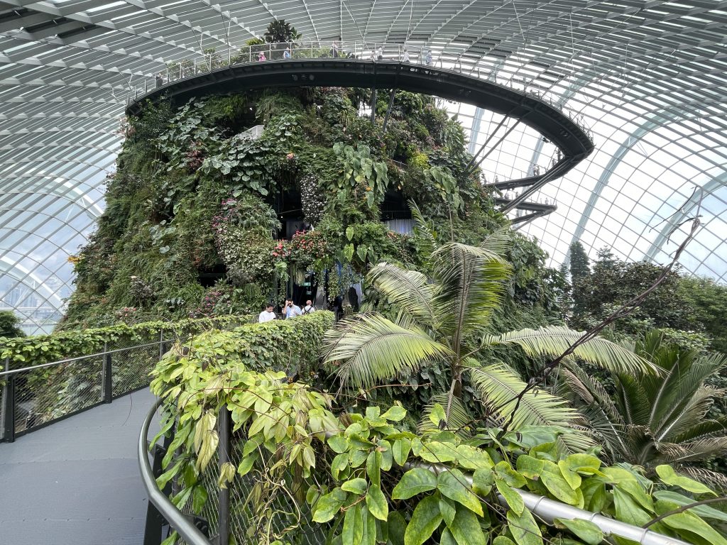 Our visit to Gardens by the Bay was spectacular. The Cloud Forest, with its 58-metre-high glass climate-controlled dome is designed to replicate the cool, misty conditions of South-east Asia’s tropical highlands.