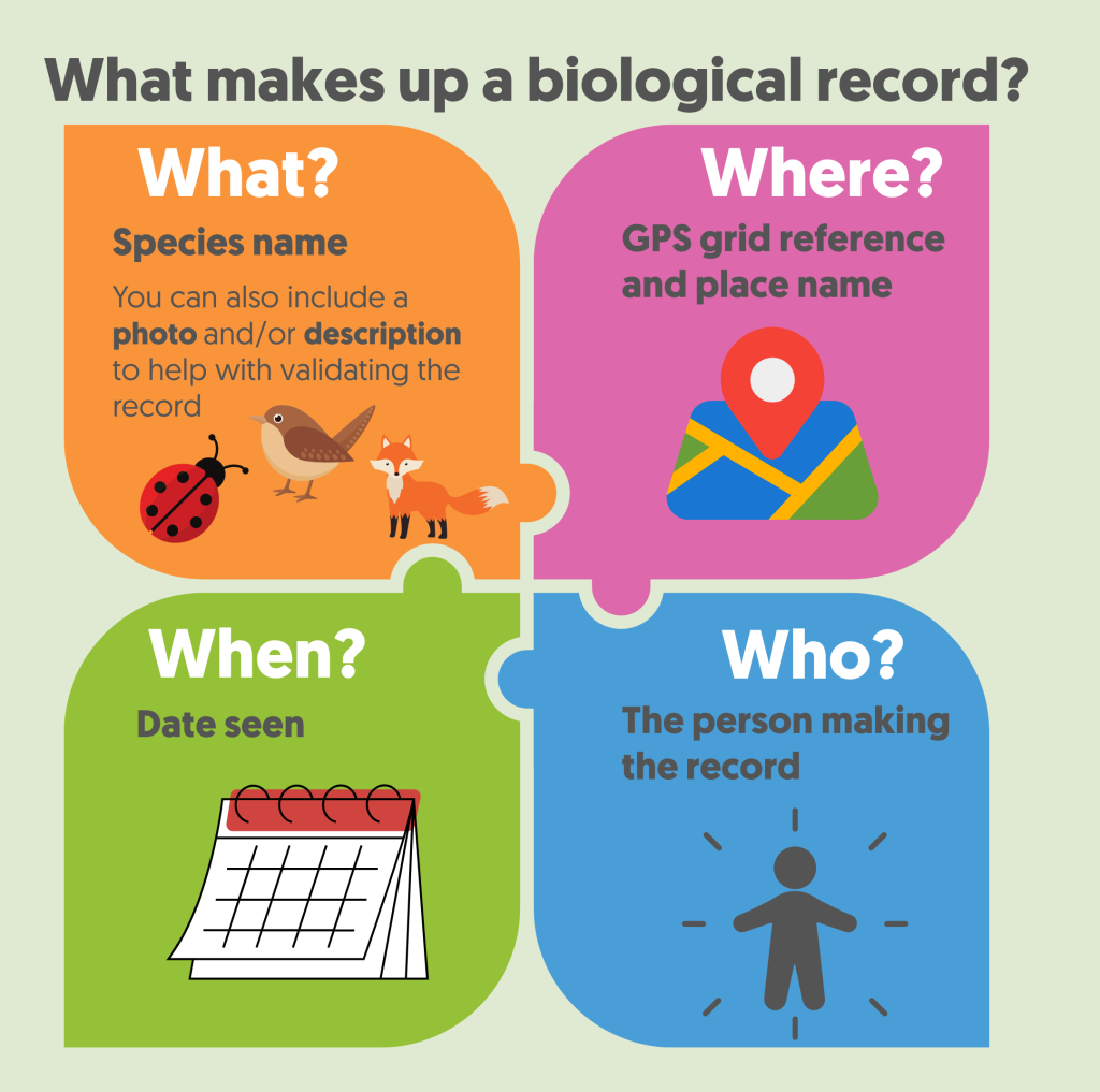 Anyone can be a biological recorder — scientists, amateur naturalists, or anyone curious about nature. You don’t have to be an expert! Biological recording can be done anywhere – your garden, local park, or even a road verge are great places to get started.