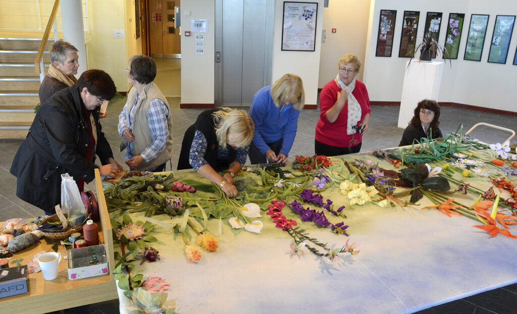 There is no structured teaching at the Stitching Botanical sessions, but guidance, sharing skills and a supply of materials (almost all donated) are available to all our members. It is the buzz of ideas, energy and enthusiasm that is infectious, stimulating and productive. Stitching Botanical is tapping into a long tradition of textile work in Wales, and believes this group may be the first of its kind to be working in a botanic garden on commissioned projects. Please tell us if you know of any others!