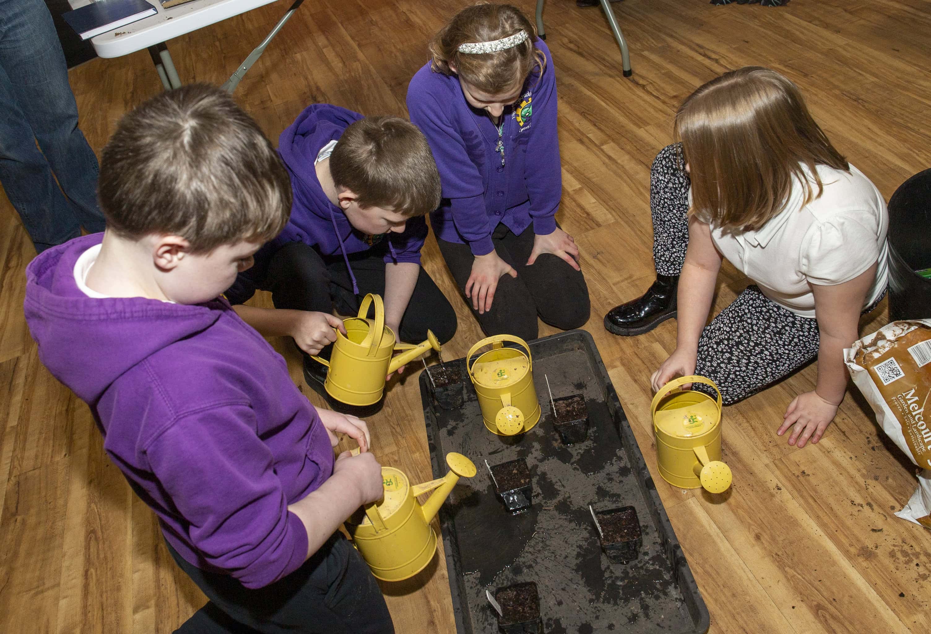 Project manager on the Hwb y Gors is Emily Hinshelwood. She said: “It was a fantastic trip to the Botanic Garden. We had five eager young gardeners planting the seeds and enjoying a tour of the Great Glasshouse.